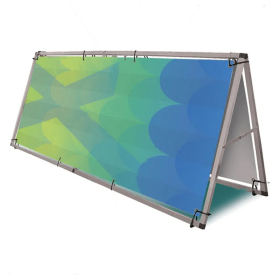 Struttura porta banner bifacciale a forma di A di grandi dimensioni, realizzata in alluminio leggero è l'ideale per esporre il tuo messaggio pubblicitario all'esterno. SPORT è dotato di un semplice sistema di assemblaggio ad incastro con terminali di aggancio in plastica e non necessita di nessun utensile. L'espositore porta banner bifacciale supporta una grafica in banner PVC sostenuta da un sistema ad occhielli regolabile. Resistente ai venti 18-24mph (5 della scala di Beaufort). Borsa per il trasporto inclusa.