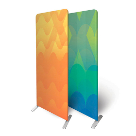 I totem in tessuto sono uno strumento versatile che consentono un cambio grafica veloce e pratico. Forniti completi di struttura autoportante e grafica stampata a sublimazione su tessuto poliestere. Disponibili nei modelli MECO e VECT.